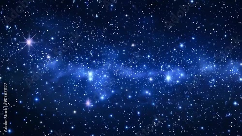 Wall mural night starry skies with twinkling stars motion background , looping seamless space backdrop with bli