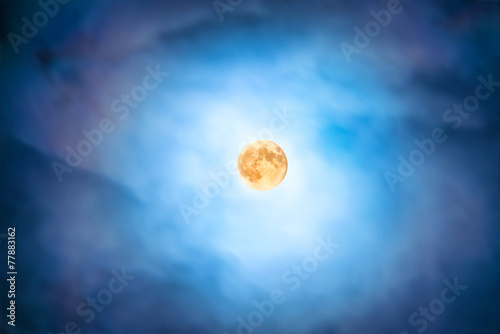 The watermark will not be included on Wall mural.: Night view at the full moon through moving blue clouds
