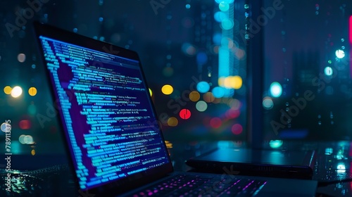 Wall mural nighttime coding session: illuminated laptop screen displaying swift programming language syntax for - Wall murals Wall mural nighttime coding session: illuminated laptop screen displaying swift programming language syntax for - Wall murals