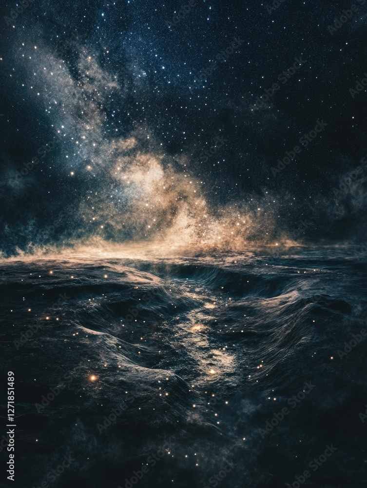 The watermark will not be included on Wall mural.: Nighttime ocean with stars