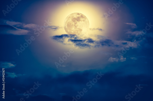 Wall mural nighttime sky with clouds and bright full moon with shiny.
