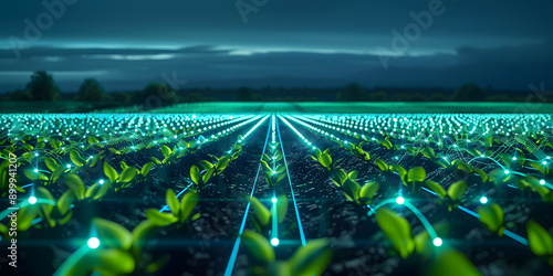 Wall mural nighttime view of smart farm with digital grid overlay enhancing crop rows. concept smart farming, d - Wall murals Wall mural nighttime view of smart farm with digital grid overlay enhancing crop rows. concept smart farming, d - Wall murals