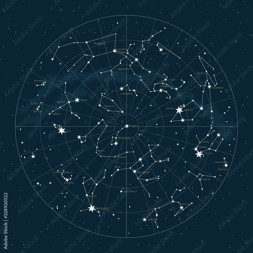 Wall mural northern hemisphere. high detailed star map of vector constellations. astrological celestial map wit - Wall murals Wall mural northern hemisphere. high detailed star map of vector constellations. astrological celestial map wit - Wall murals