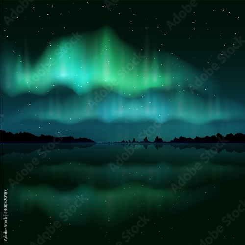 Wall mural northern lights, aurora borealis, vector realistic illustration