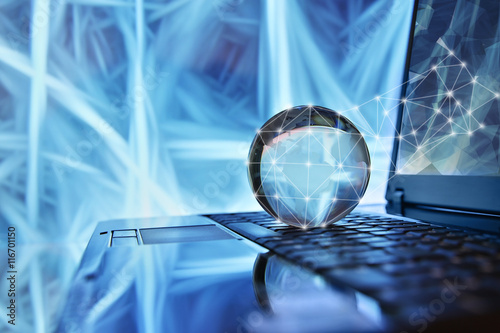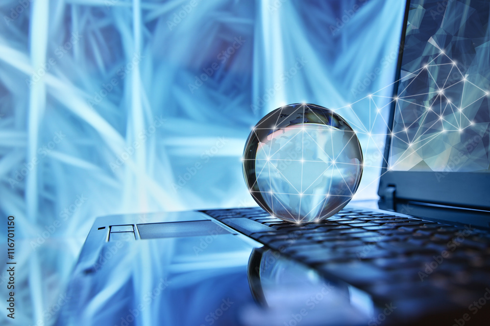 The watermark will not be included on Wall mural.: Notebook with globe network concept