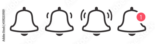 Wall mural notification bell icons set line style isolated on white background for alarm clock, subscribe butto - Wall murals Wall mural notification bell icons set line style isolated on white background for alarm clock, subscribe butto - Wall murals