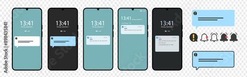 Notification screen ui - push notification - sms notification on the screen of the smartphone - sms popWall mural