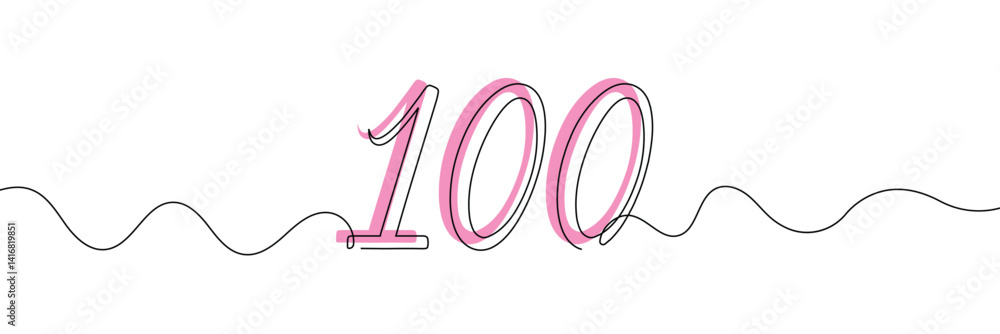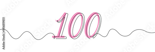 Wall mural number 100 in continuous line drawing style. line art of number nine. vector illustration. abstract