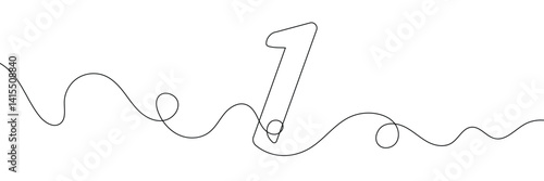 The watermark will not be included on Wall mural.: Number 1in continuous line drawing style - line art of number nine - vector illustration - abstract dra