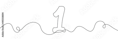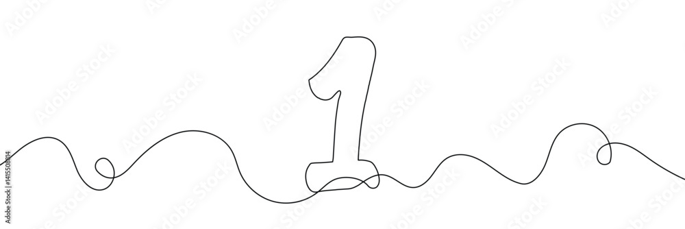 The watermark will not be included on Wall mural.: Number 1in continuous line drawing style - line art of number nine - vector illustration - abstract dra