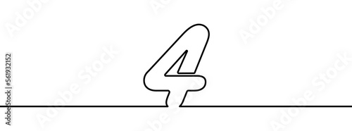Wall mural : Number 4 in continuous line drawing style - line art of number four - vector illustration - abstract dr