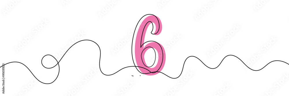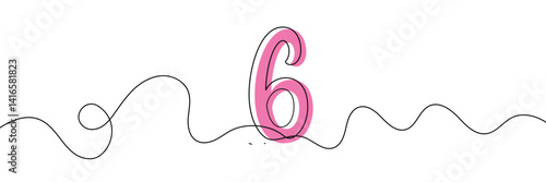 Wall mural number 6 in continuous line drawing style. line art of number nine. vector illustration. abstract dr