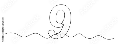 Wall mural number 9 in continuous line drawing style. line art of number nine. vector illustration. abstract dr