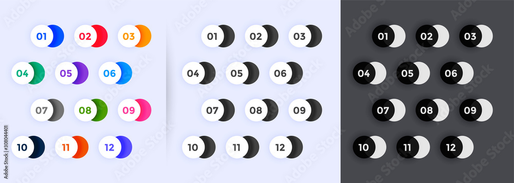 Wall mural number bullet points set from one to twelve - Wall murals Wall mural number bullet points set from one to twelve - Wall murals