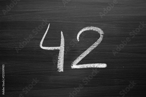 Wall mural : Number forty two enumeration written with a chalk on the blackboard