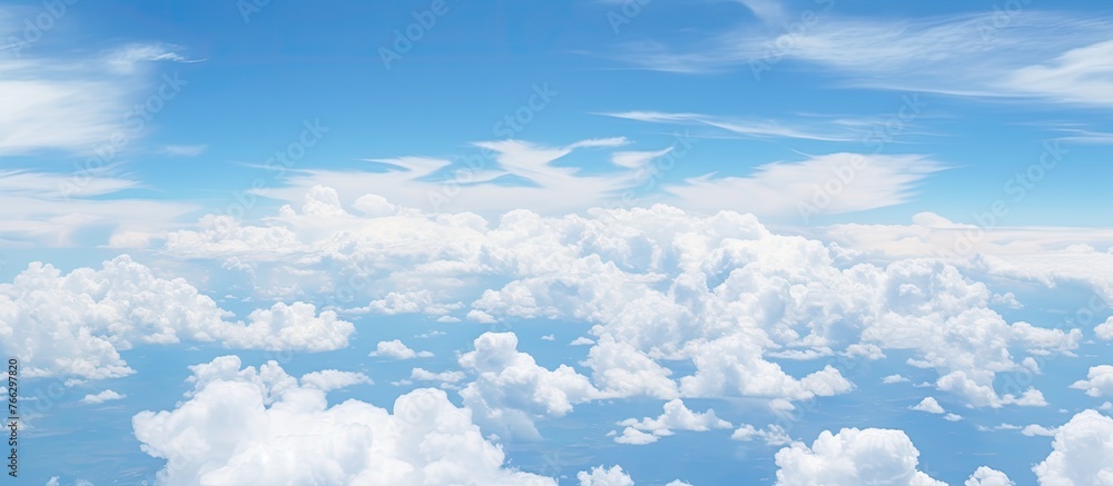Wall mural numerous fluffy clouds drifting and floating across the vast blue sky creating a picturesque scene