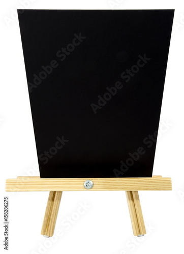 Wall mural : Odd perspective of blank black board on presentation easel - copy space - vertical - isolated -