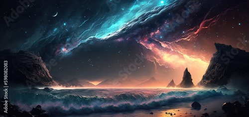 Wall mural of a seascape dotted with galaxies generative ai generative ai - Wall murals Wall mural of a seascape dotted with galaxies generative ai generative ai - Wall murals