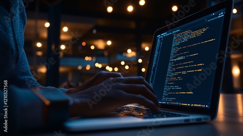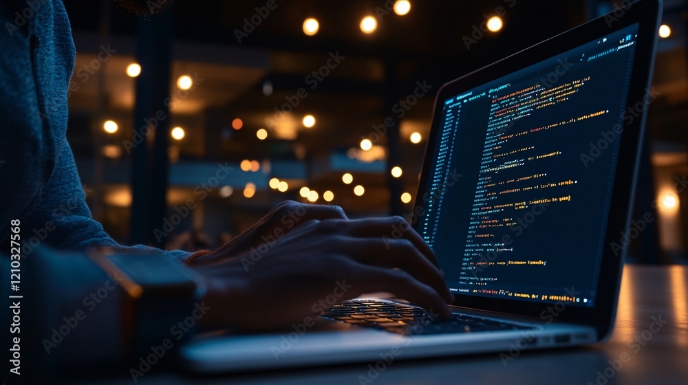 Wall mural of a web developer's hands typing code on a laptop, focusing on the technical aspect of web developm - Wall murals Wall mural of a web developer's hands typing code on a laptop, focusing on the technical aspect of web developm - Wall murals