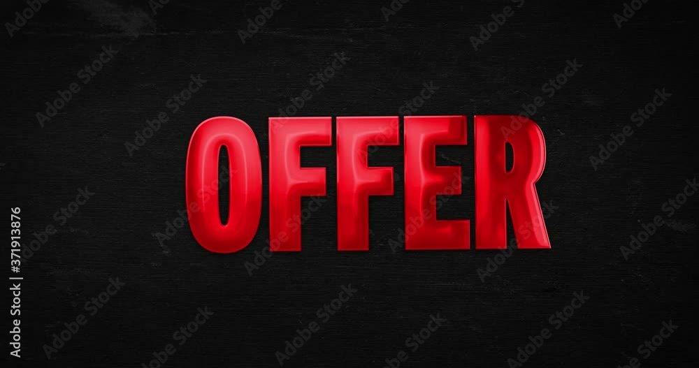 Wall mural : Offer - glossy red word is zoomed into focus - text intro/opener on background (black) - 4k animation