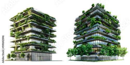 Wall mural office building with green environment. corporate building reduce co2. generative ai.