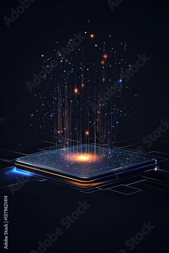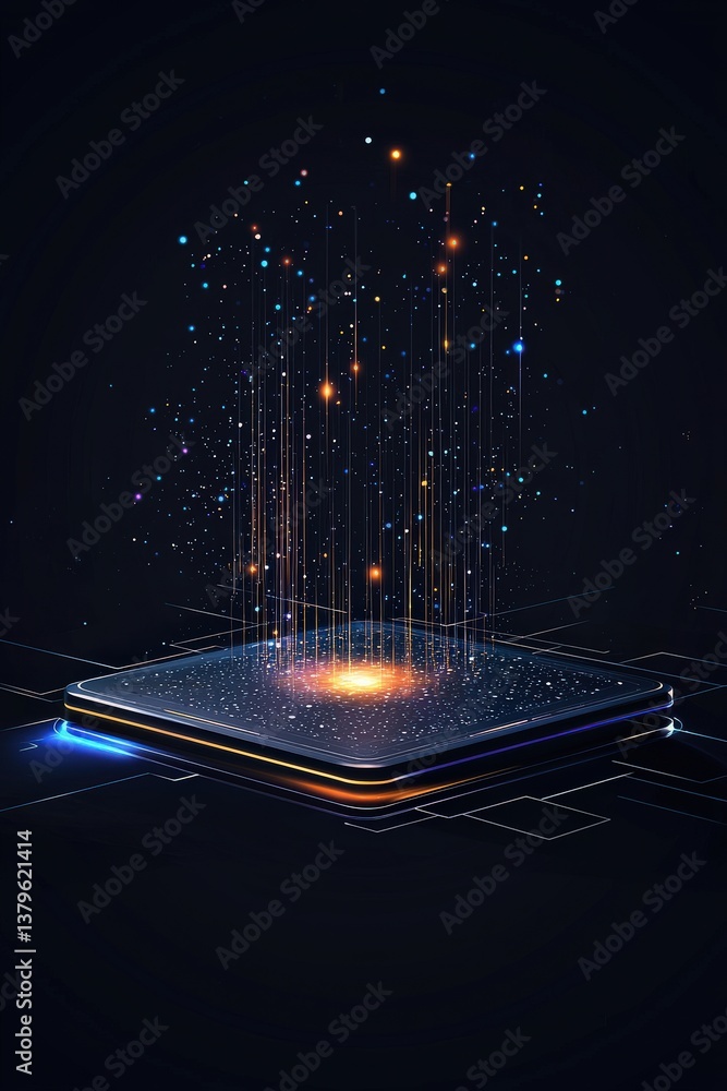 Wall mural office desk merging with holographic interface, representing futuristic workspace. - Wall murals Wall mural office desk merging with holographic interface, representing futuristic workspace. - Wall murals