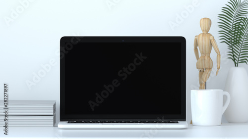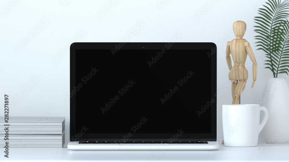Wall mural office equipment mock up element notebook is on the table in front white wall ,objects 3d rendering  - Wall murals Wall mural office equipment mock up element notebook is on the table in front white wall ,objects 3d rendering - Wall murals