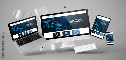 Wall mural office stuff and devices floating with technology innovative website - Wall murals Wall mural office stuff and devices floating with technology innovative website - Wall murals