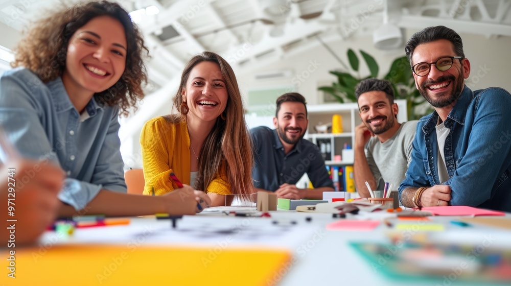 The watermark will not be included on Wall mural.: Office teamwork in action during creative workshop session