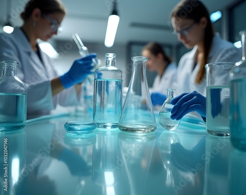 The watermark will not be included on Wall mural.: Office workers use science glass tools for various experiments every day -
