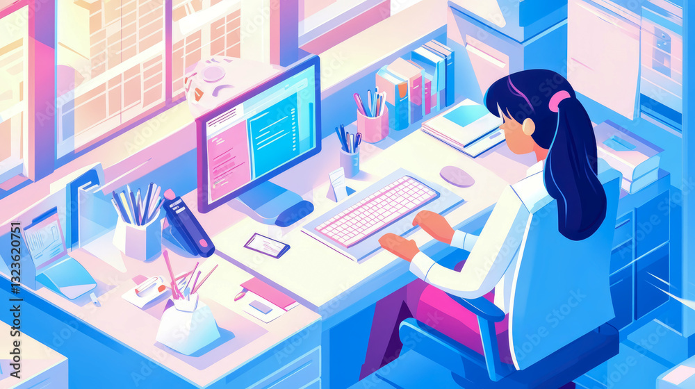 Wall mural office workspace: a developer working on a project on the computer, concept of software or applicati - Wall murals Wall mural office workspace: a developer working on a project on the computer, concept of software or applicati - Wall murals