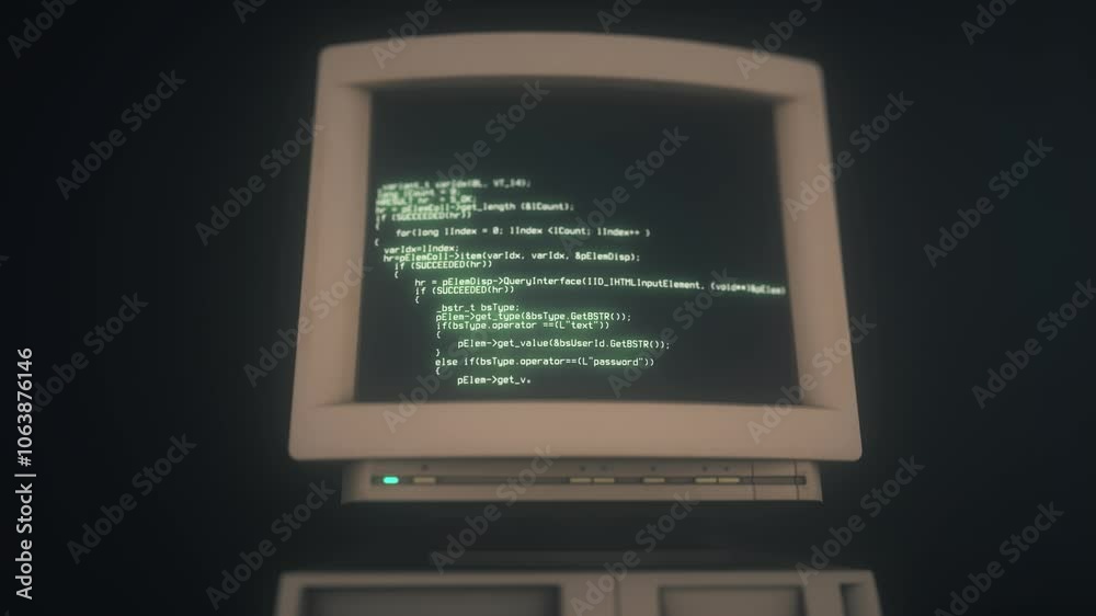 Wall mural old personal computer with source code running on screen, display - Wall murals Wall mural old personal computer with source code running on screen, display - Wall murals