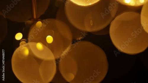 The watermark will not be included on Wall mural.: On a black background, blurred bokeh circles appear, creating a dreamy and abstract effect -
