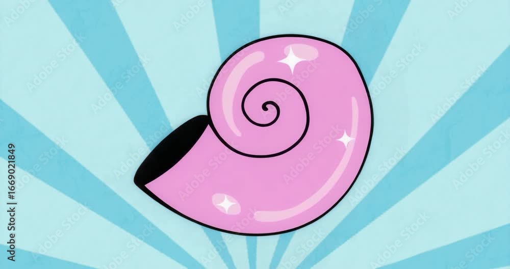 The watermark will not be included on Wall mural.: On start pink spiral shell appearing centered and holding for view while blue rays radiating behind