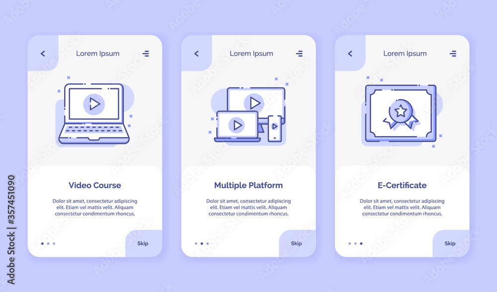 Wall mural : Onboarding icon online course video course multiple platform e certificate campaign for mobil apps h