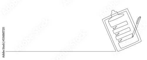 The watermark will not be included on Wall mural.: One continuous line drawing of clipboard with checklist and pen - to do list with ticks and concept f