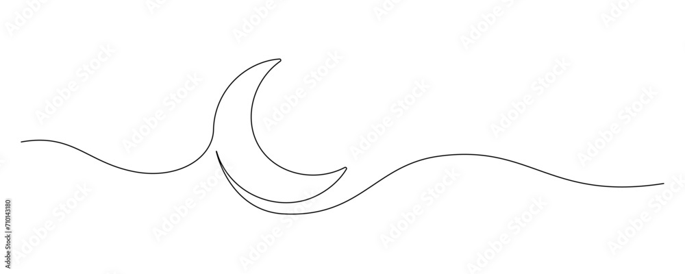 Wall mural one continuous line drawing of moon. ramadan kareem banner in simple linear style. sleep symbol with