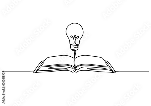 Wall mural : One line drawing of a light bulb on books - combining illumination and learning -