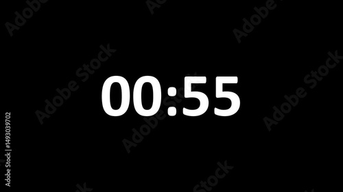 Wall mural one minute countdown animation from 60 seconds to 0 seconds on a transparent background, one minute