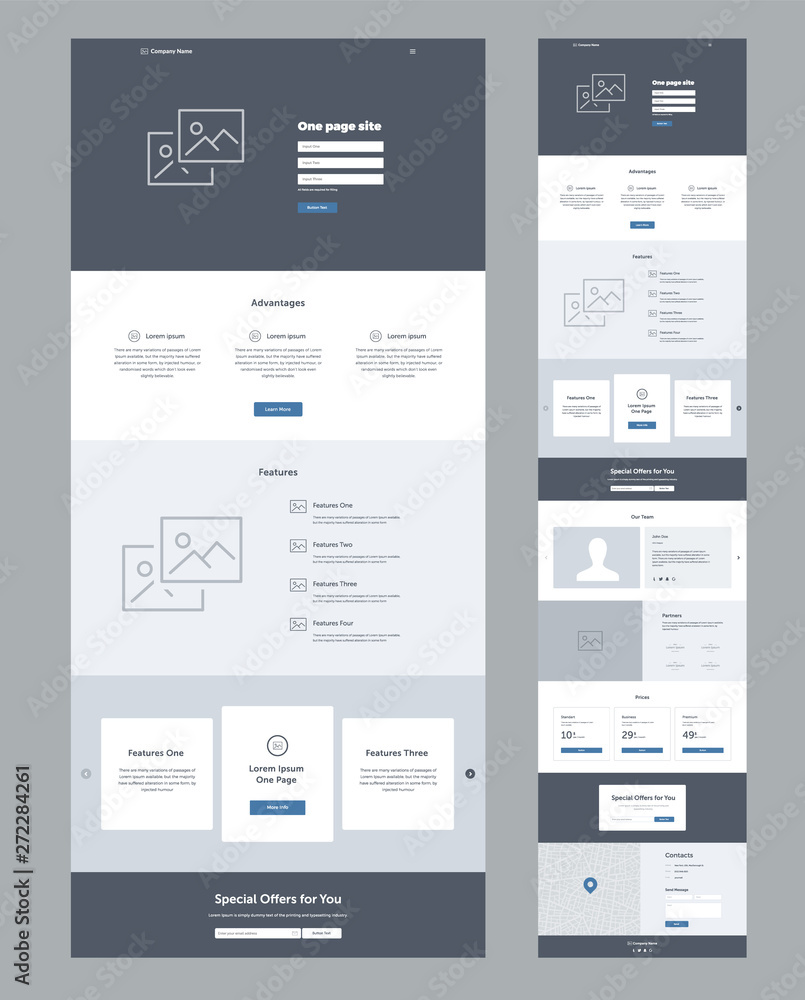 Wall mural one page website design template for business. landing page wireframe. flat modern responsive design - Wall murals Wall mural one page website design template for business. landing page wireframe. flat modern responsive design - Wall murals
