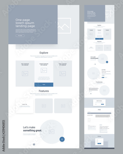 One page website design template for business - landing page wireframe - modern responsive design - ux Wall mural