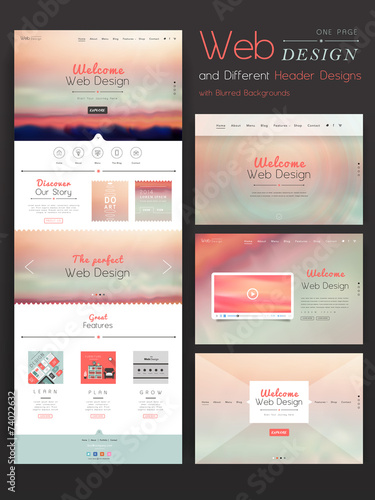 Wall mural one page website template design with blurred background - Wall murals Wall mural one page website template design with blurred background - Wall murals