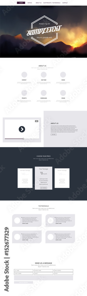The watermark will not be included on Wall mural.: One page website template with abstract mountains header design -