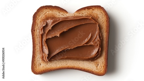 Wall mural one single toast bread with chocolate hazelnut paste spread isolated on white background - Wall murals Wall mural one single toast bread with chocolate hazelnut paste spread isolated on white background - Wall murals