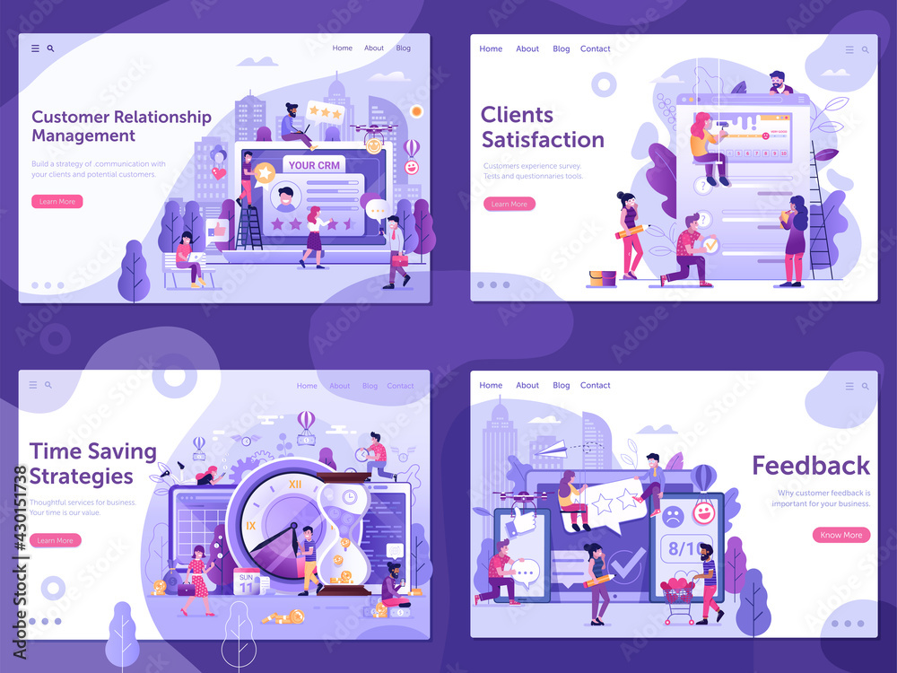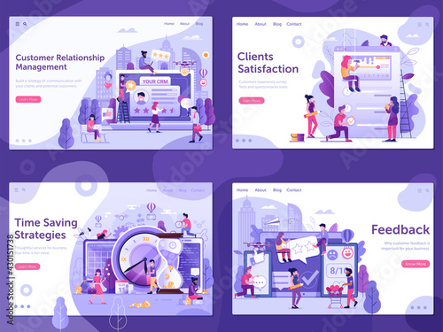 The watermark will not be included on Wall mural.: Online business management ui banners in flat