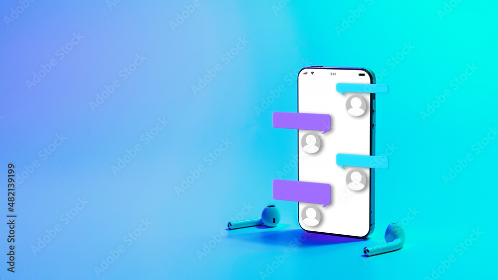 Wall mural online chat sms notification. message conversation on smartphone screen. instant messaging app on ne - Wall murals Wall mural online chat sms notification. message conversation on smartphone screen. instant messaging app on ne - Wall murals