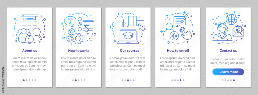Wall mural : Online courses onboarding mobile app page screen with linear con