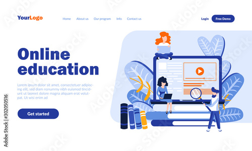 The watermark will not be included on Wall mural.: Online education vector landing page template with header - educational program app web banner, homep