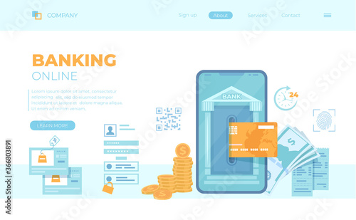 Wall mural online internet banking. payment for purchases via smartphone. fast easy securely mobile banking. cr