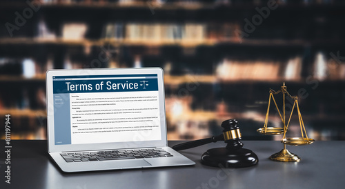 Wall mural : Online term of service conditions showing savvy rules and regulations in using the website on a lapt